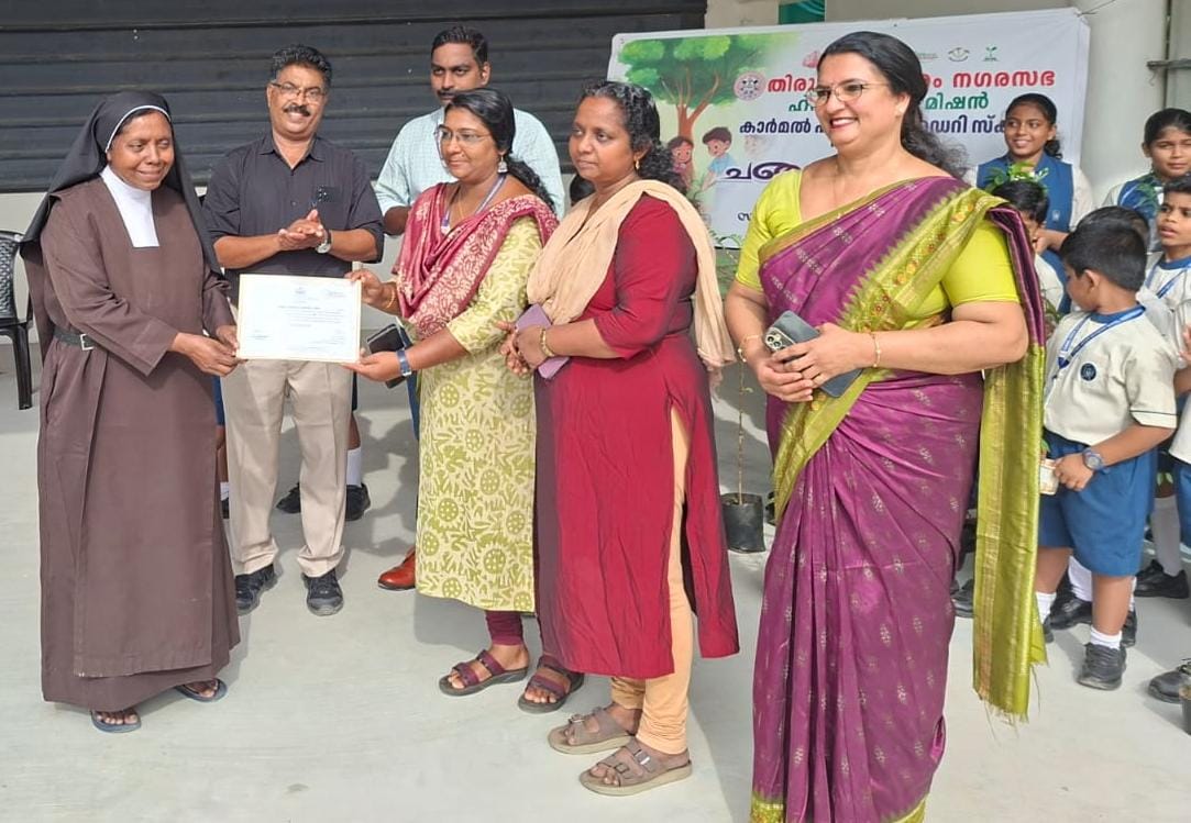 We are thrilled to announce that our school ( Carmel HSS,Vazhuthacaud)has been honoured with the Malinyamuktha Nava Keralam Award, instituted by the Govt of Keralas flagship event " Vrithi 2025- the Clean Kerala Conclave.We have secured the first position among unaided schools in the entire state for our unwavering commitment to maintaining a clean and eco-friendly environment.This prestigious recognition is a testament to the collective efforts of our students, staff, and the entire school community in fostering a sustainable and healthy learning space.